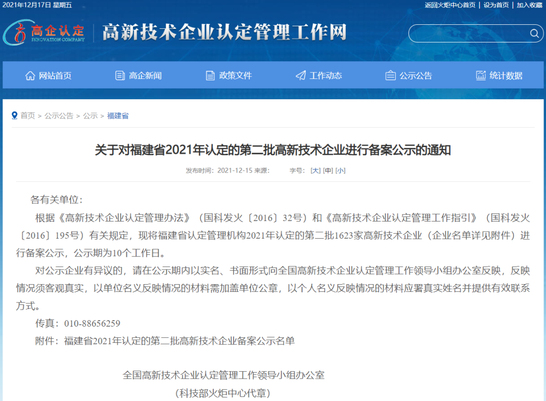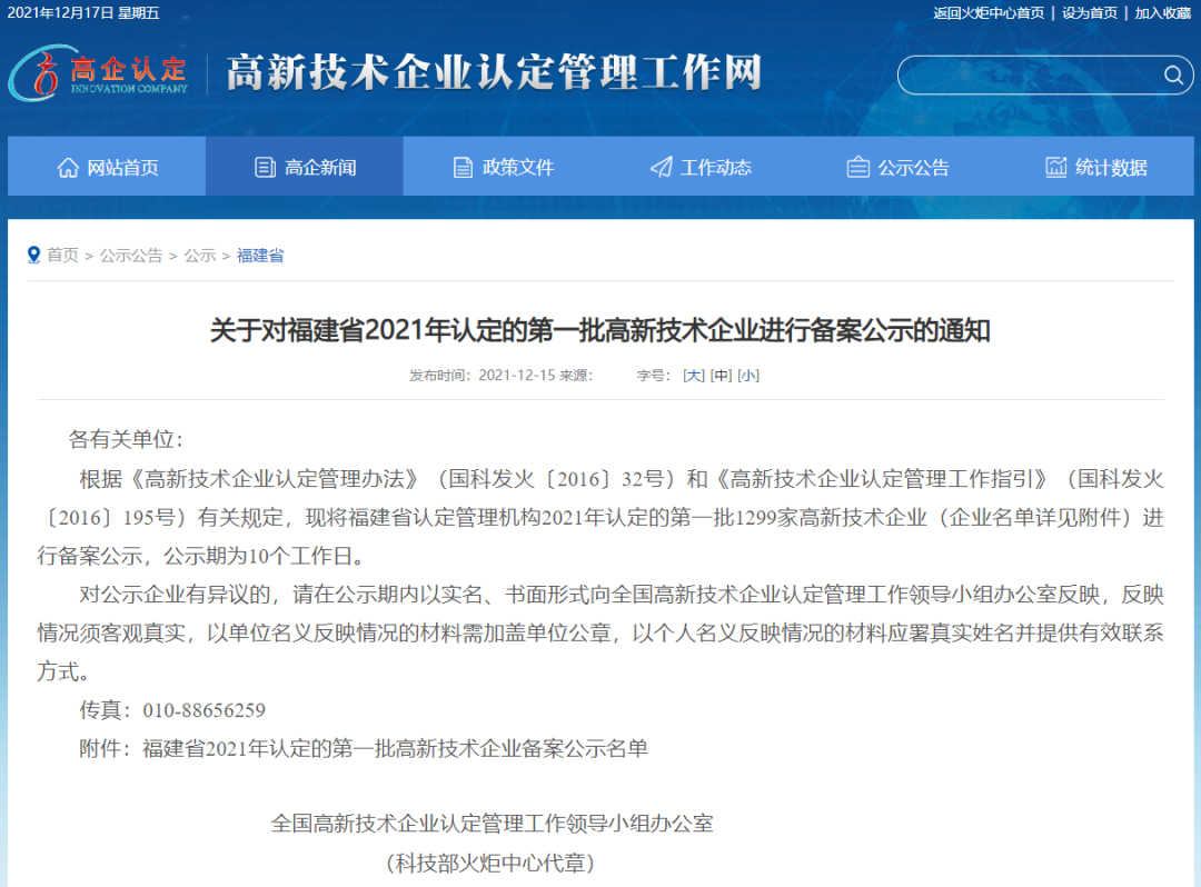 近日,全国高新技术企业认定管理工作领导小组办公室公布2021年福建省第一批、第二批高新技术企业国家备案公示名单,我协会共10家会员单位入围!分别是: