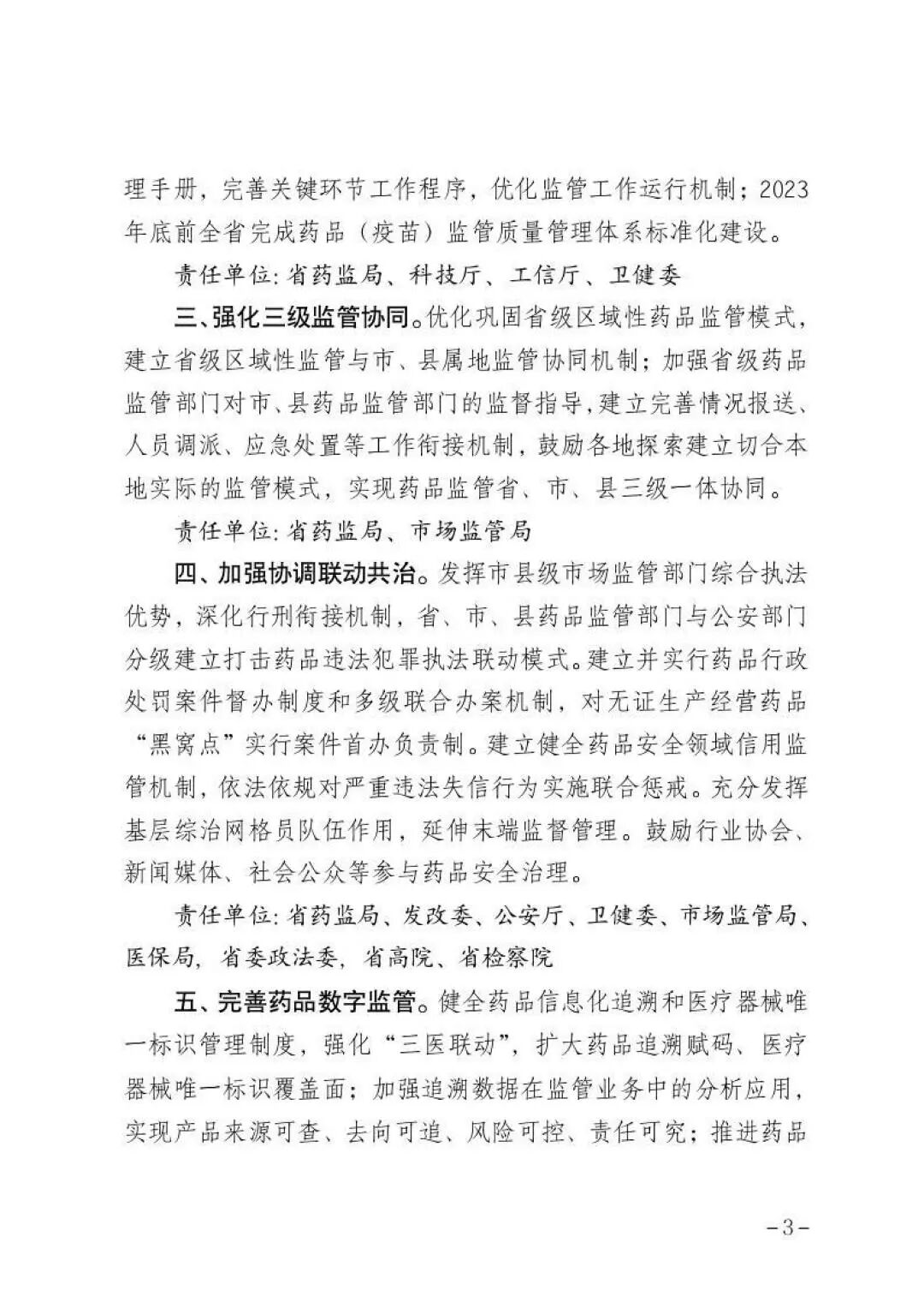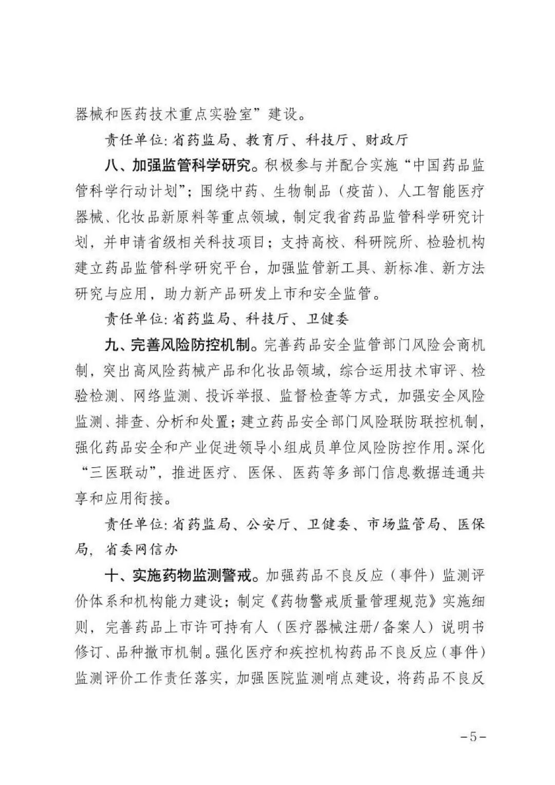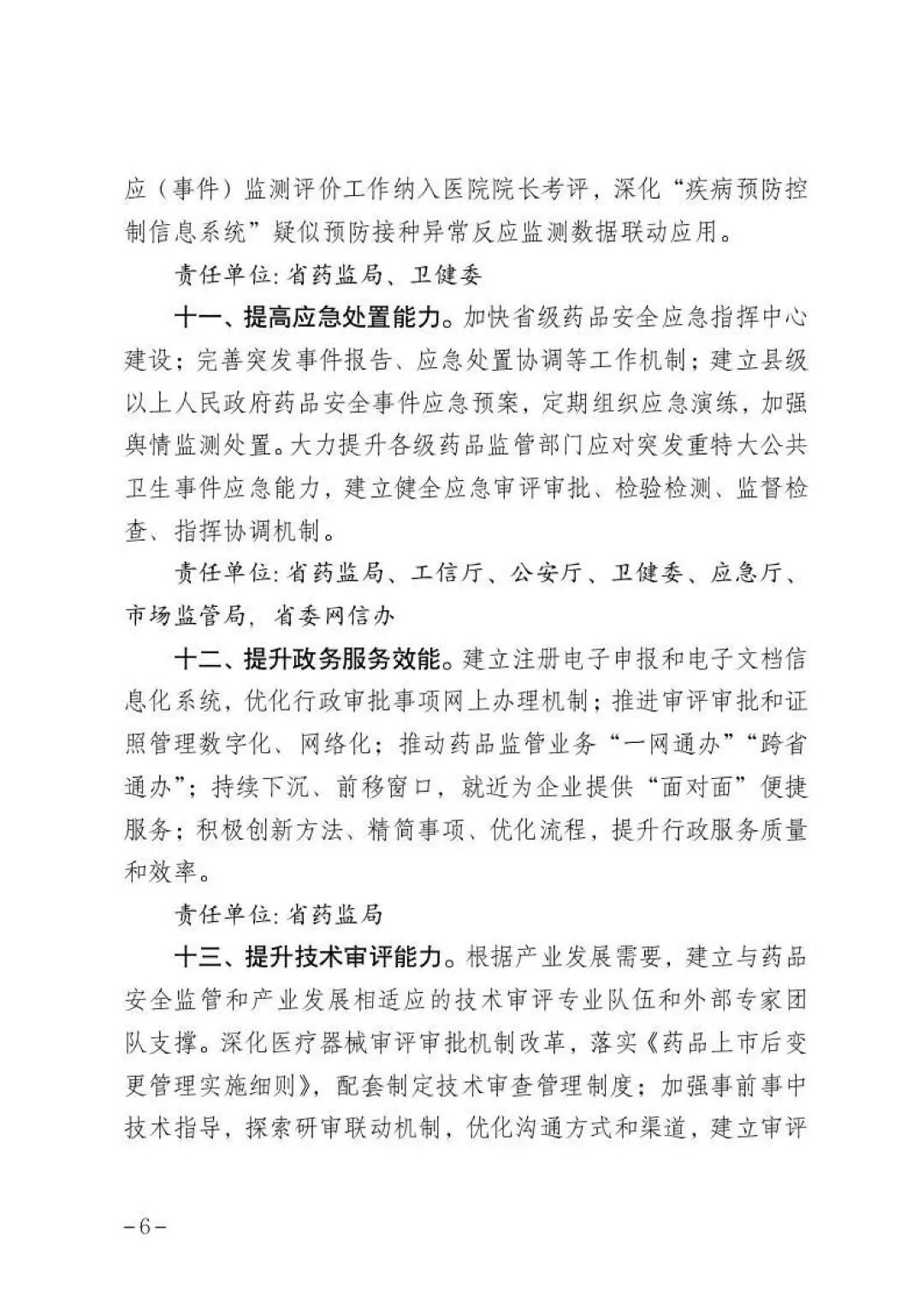 《实施方案》围绕贯彻落实《国务院办公厅关于全面加强药品监管能力建设的实施意见》(国办发〔2021〕16号)精神,紧密结合我省药品监管和产业促进能力建设实际,对标全国领先水准,着力强基础、补短板、破瓶颈、促提升,重点突出加强法规制度建设、提升监管标准质量、强化三级监管协同、加强协调联动共治、完善药品数字监管、加强网络交易监管、提升检验检测能力、加强监管科学研究、完善风险防控机制、实施药物监测警戒、提高应急处置能力、提升政务服务效能、提升技术审评能力、促进中药传承创新、推动产业集聚发展、加强监管队伍建设、激励干部担当作为17个方面的能力建设要求,提出“智慧监管、检验检测、监管队伍、政务服务4大能力建设重点工程,要求加强药品安全和产业促进工作的领导,建立药品安全和产业促进工作协调机制,全面推进我省药品监管和产业促进工作科学化、法治化、国际化、现代化水平提升,全方位推进药品安全及产业高质量发展超越。