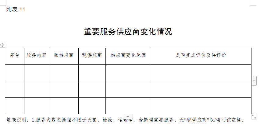 (四)重要供应商变化情况:对于主要原材料、关键原材料的供应商与提供灭菌、检验、运输等服务的重要供应商发生变化的,应进行评价与再评价。