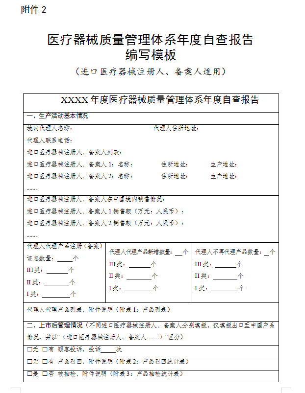 医疗器械质量管理体系年度自查报告编写模板(进口医疗器械注册人、备案人适用)
