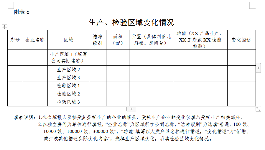 (二)生产、检验区域及生产、检验设备变化情况:对生产、检验区域涉及位置、布局及生产、检验设备等发生变化的,描述相关情况。