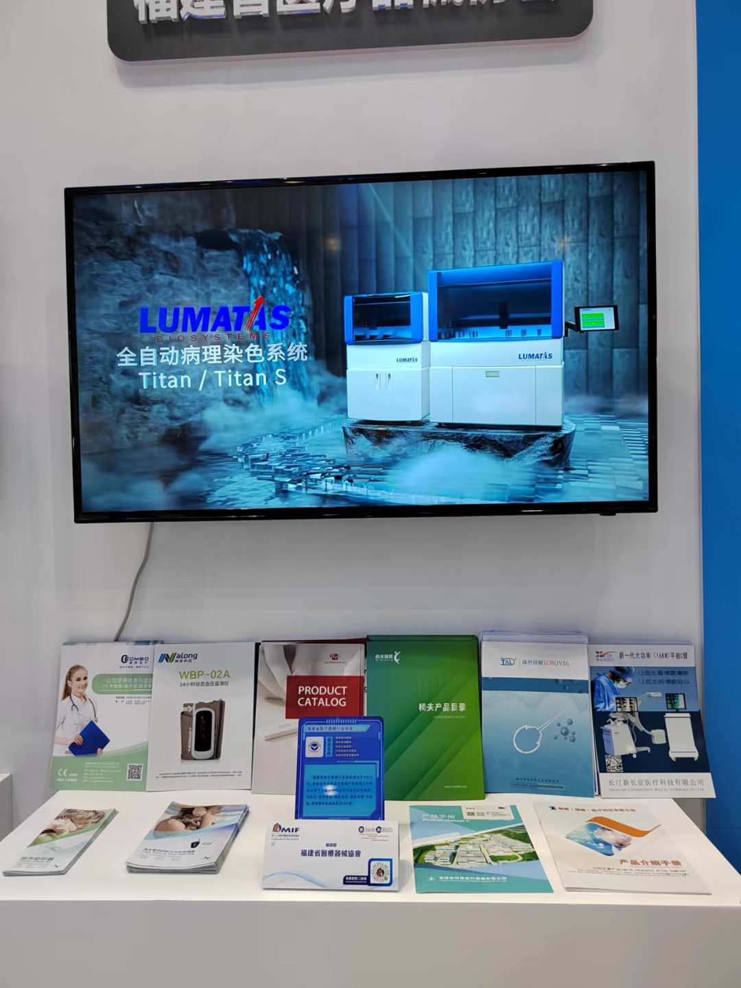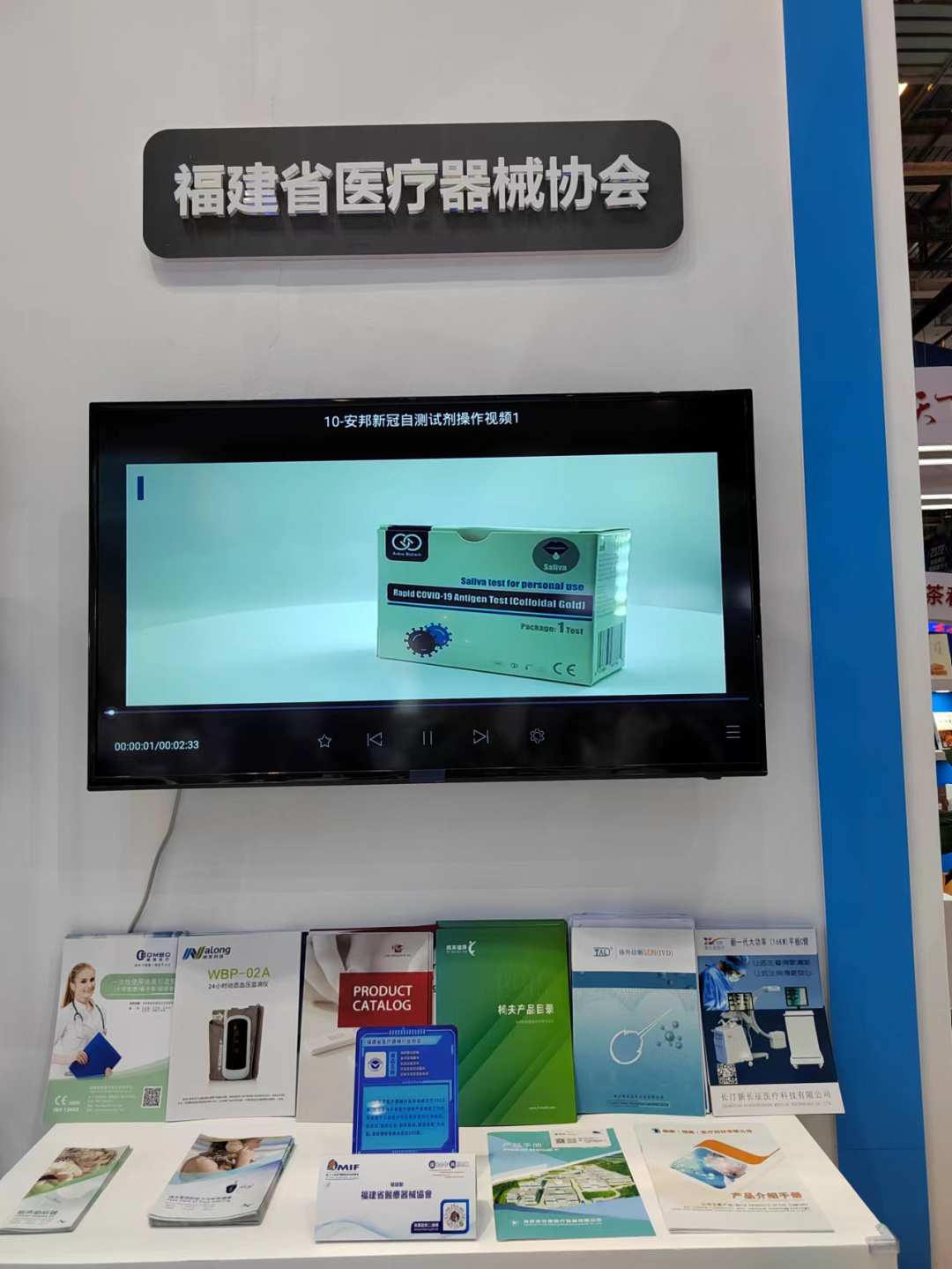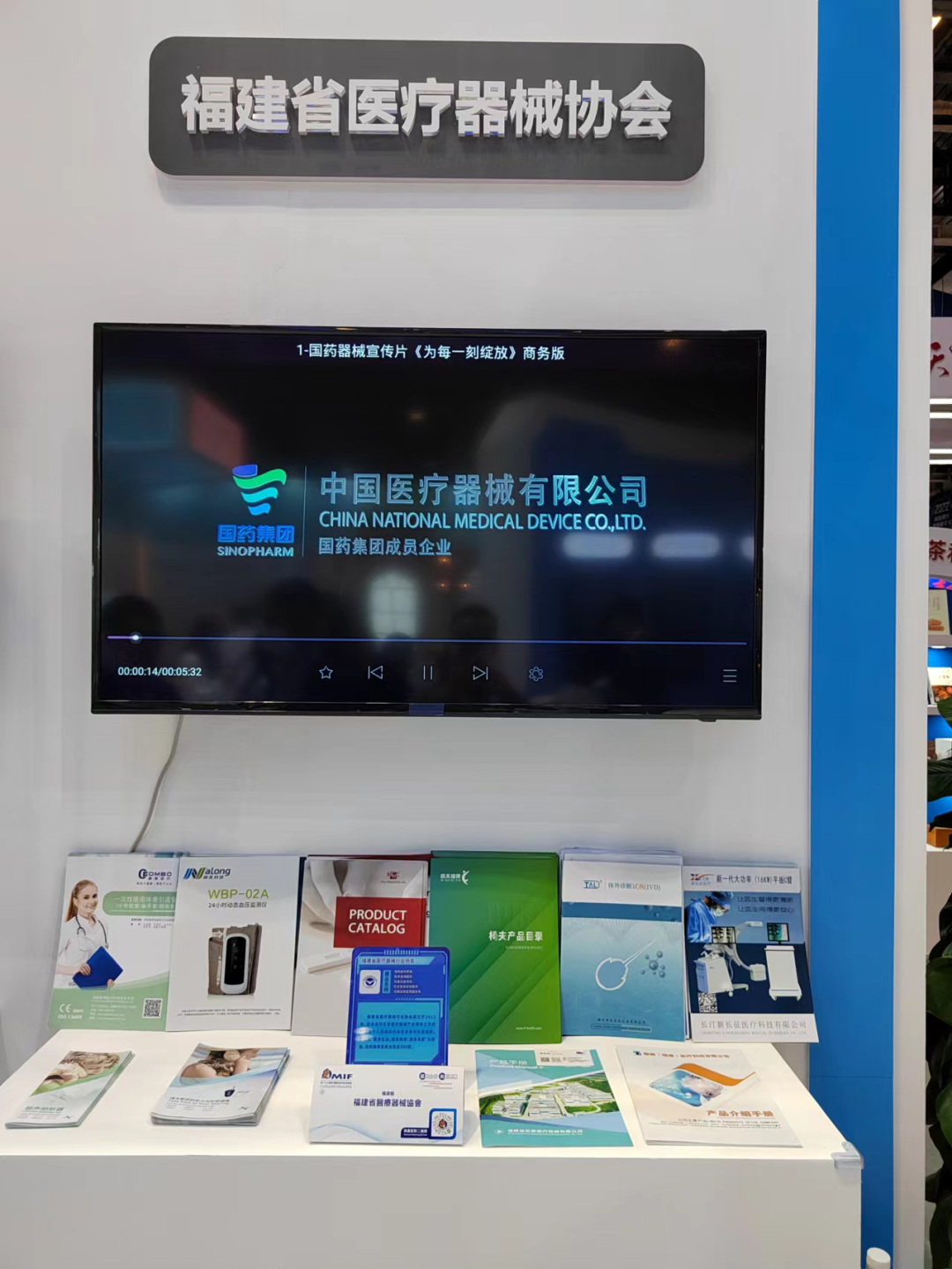 ► 福建省医疗器械行业协会作为团体参展代表受邀参展,重点展示了我省12家医疗器械企业展品。此次通过现场展示我省医疗器械企业产品宣传册、播放企业宣传片及产品宣传视频。协会会长薛经建、专职副秘书长梁庆涛受邀参加此次博览会。